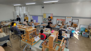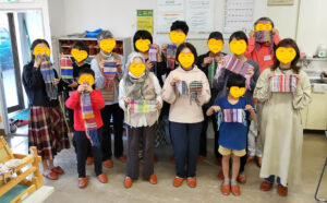 11月30日に自主開催による機織り体験講座を行いました。 13名の方にご参加いただきました。 これまでは子供を対象とした講座が主だったのですが、今回の方の年齢は幅広くまた 親子 ご夫婦 ご友人 おひとりでの参加と様々でした。 でも機織り作業が始まると皆一様に真剣な表情です。 織りあがった作品と一緒に記念撮影しました。楽しんでいただけたようでとても嬉しいです。 ご参加まことにありがとうございました。